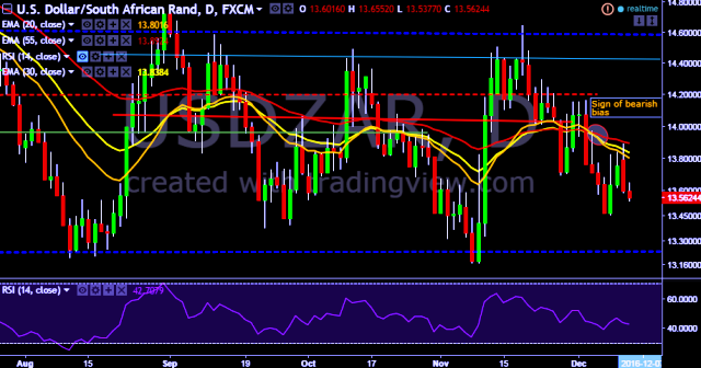 We prefer to take short position in USD/ZAR around 13.60, stop loss at 13.90 and target of 13.45/13.31.