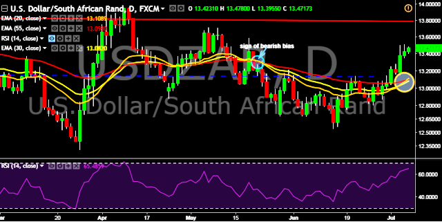 We prefer to take long position in USD/ZAR around 13.45, stop loss at 13.30 and target of 13.70.