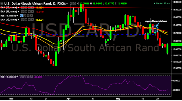 We prefer to take short position in USD/ZAR around 12.95, stop loss at 13.16 and target of 12.70/12.40.