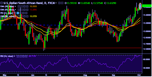 We prefer to take long position on USD/ZAR only above 13.72, stop loss 13.51 and target of 13.95/14.06.
