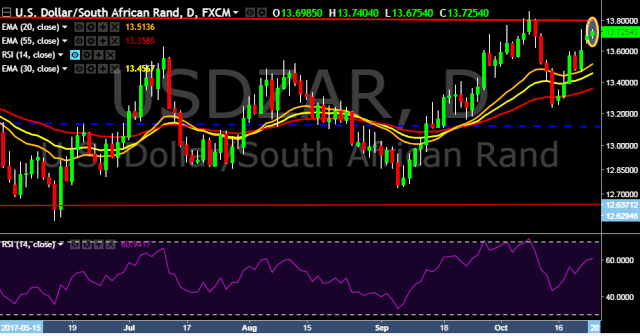 We prefer to take long position on USD/ZAR around 13.68, stop loss 13.50 and target of 13.95.