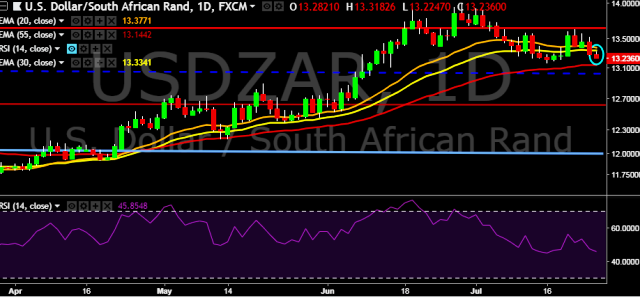 We prefer to take short position on USD/ZAR around 13.26, stop loss 13.37 and target of 13.16/12.99.