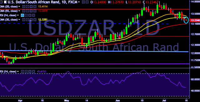 We prefer to take short position on USD/ZAR around 13.25, stop loss 13.40 and target of 12.99.