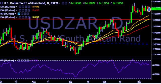 We prefer to take long position on USD/ZAR only above 14.25, stop loss 12.96 and target of 14.49 mark.