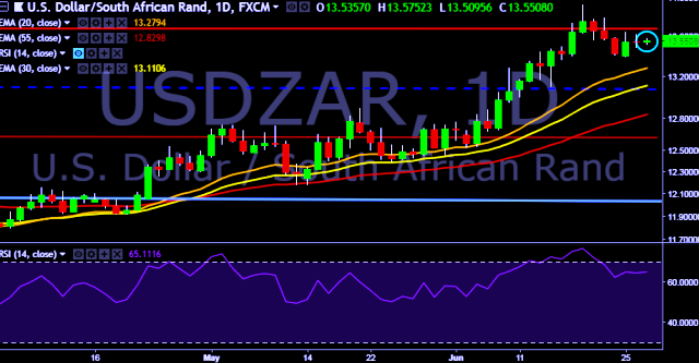 - USD/ZAR is currently trading around 13.54 levels.