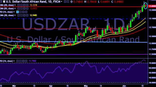 - USD/ZAR is currently trading around 13.67 levels.