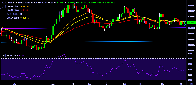 We prefer to take short position on USD/ZAR only below 14.75, stop loss at 14.94 and target of 14.40/14.22.
