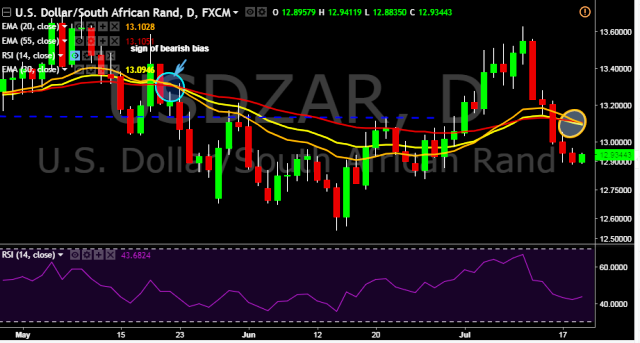We prefer to take short position in USD/ZAR only below 12.88, stop loss 13.05 and target of 12.48.