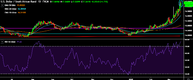 - USD/ZAR is currently trading around 17.40 levels.