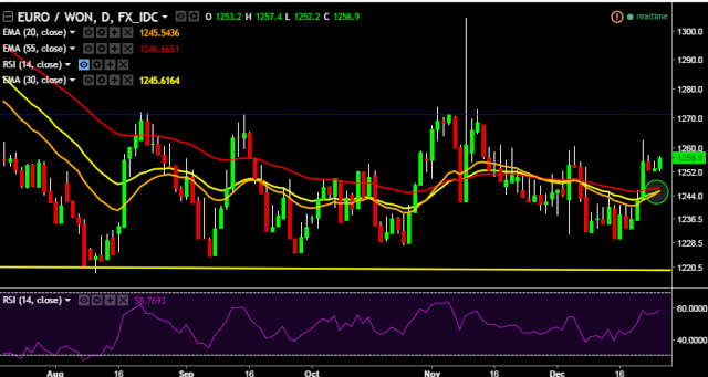 - EUR/KRW is currently trading around 1,255 mark.