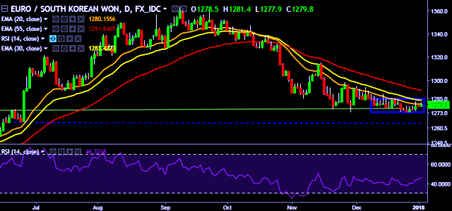 - EUR/KRW is currently trading around 1,279 mark.