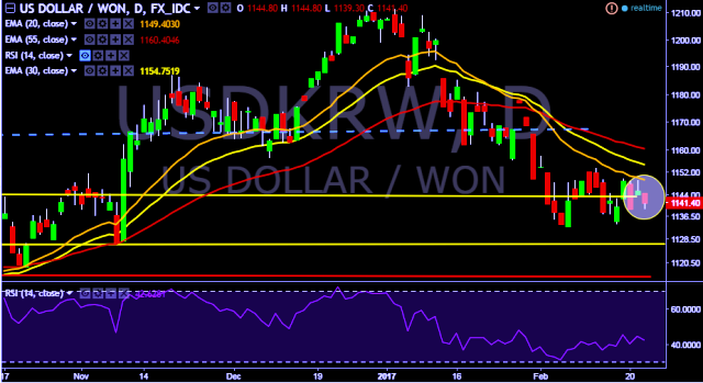 We prefer to take short position in USD/KRW around 1,143, stop loss 1,148 and target of 1,139/1,132/1,124.