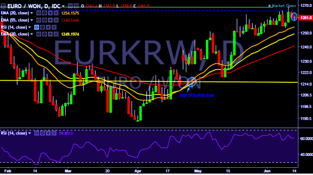 - EUR/KRW is currently trading around 1,260 mark.