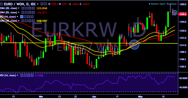 We prefer to take short position in EUR/KRW only below 1,247, stop loss at 1,260 and target of 1,240/1,234.