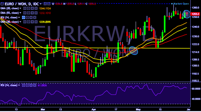 - EUR/KRW is currently trading around 1,253 mark.