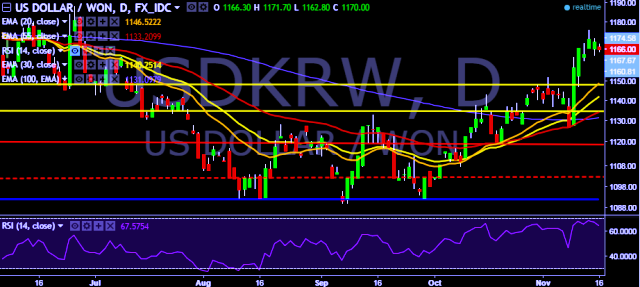 - USD/KRW is currently trading around 1,165 levels.