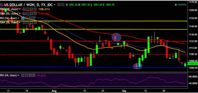 - USD/KRW is currently trading around 1,095 levels.