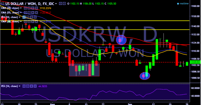 - USD/KRW is currently trading around 1,105 levels.