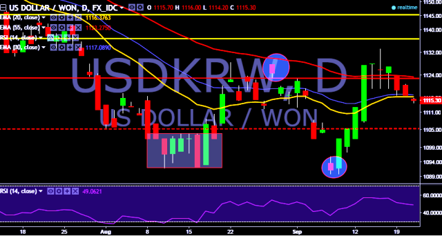 We prefer to go short on USD/KRW around 1,118 with stop loss at 1,127 and target of 1,102/1,090.