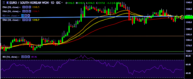 - EUR/KRW is currently trading around 1,317 mark.