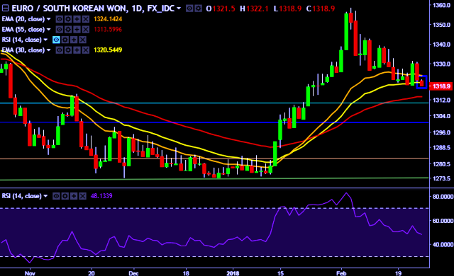 We prefer to take short position on EUR/KRW only below 1,319, stop loss at 1,330 and target of 1,298.