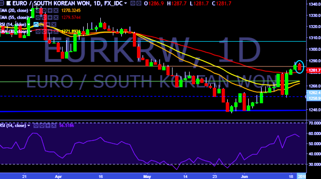 We prefer to take short position on EUR/KRW only below 1,277, stop loss at 1,289 and target of 1,258.