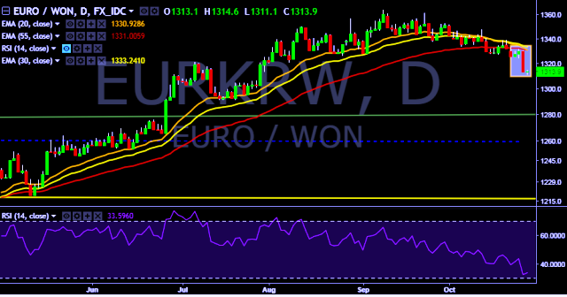 We prefer to take short position on EUR/KRW only below 1,325, stop loss at 1,338 and target of 1,313.