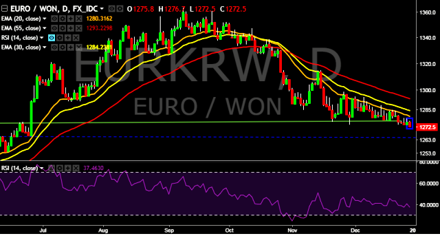 We prefer to take short position on EUR/KRW around 1,275, stop loss at 1,282 and target of 1,264/1,253.