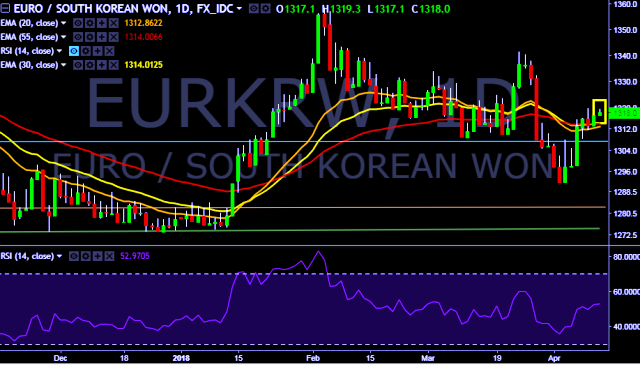 We prefer to take short position on EUR/KRW only below 1,315, stop loss at 1,322 and target of 1,308/1,298.