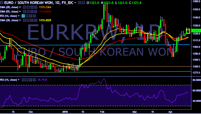 - EUR/KRW is currently trading around 1,323 mark.