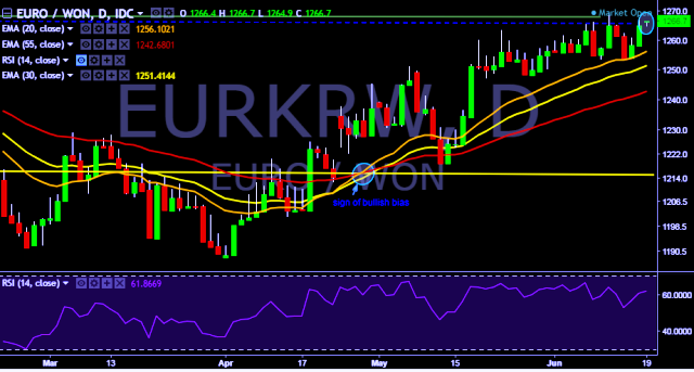 We prefer to take long position in EUR/KRW only above 1,269, stop loss 1,254 and target of 1,287.