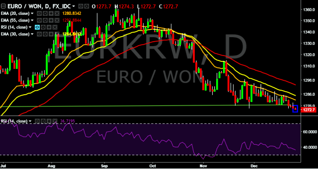 We prefer to take short position on EUR/KRW around 1,275, stop loss at 1,282 and target of 1,264/1,253.