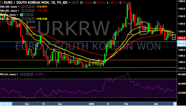 We prefer to take short position on EUR/KRW around 1,312, stop loss at 1,317 and target of 1,308/1,290.