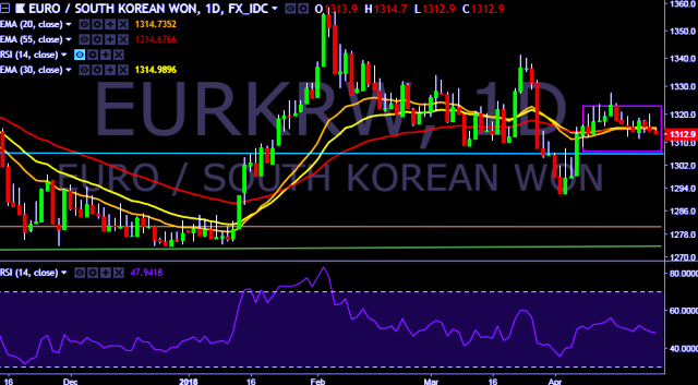 We prefer to take short position on EUR/KRW around 1,313, stop loss at 1,320 and target of 1,305/1,291.