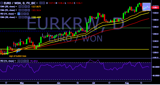- EUR/KRW is currently trading around 1,335 mark.