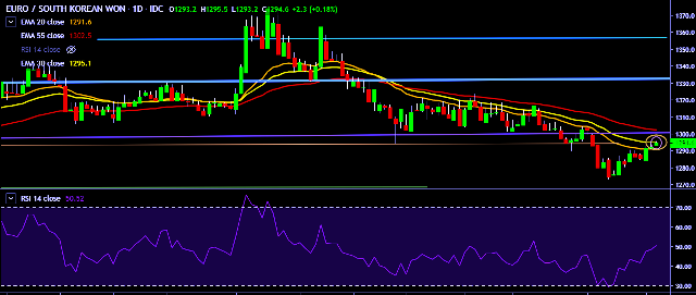 We prefer to take short position on EUR/KRW only below 1,288, stop loss at 1,297 and target of 1,274/1,265.