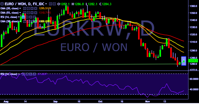 We prefer to take short position on EUR/KRW around 1,286, stop loss at 1,302 and target of 1,264.