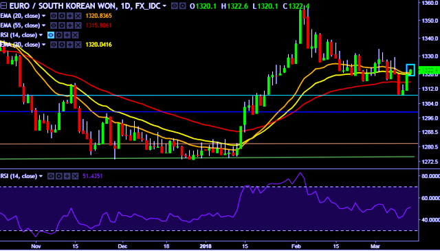 - EUR/KRW is currently trading around 1,321 mark.