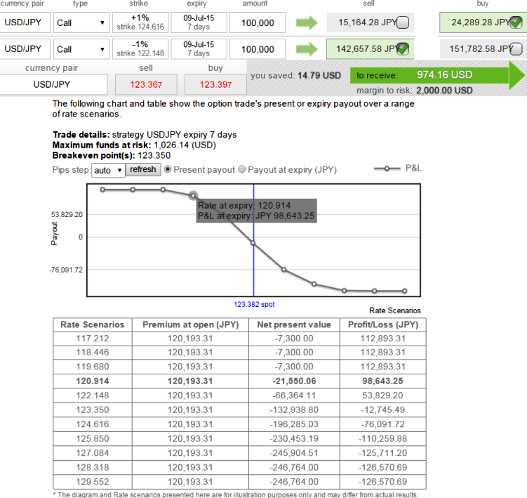 In the interest of speculators we see buying opportunities in USD/JPY binary puts at every rise for a target of 123 levels.