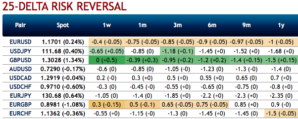 Rationale: Considering the bullish (in near-term) and bearish technical environment (in long-term) and most importantly, the skews in the sensitivity tool indicate hedging sentiments for the bearish risks, these risks are coupled with bearish risk reversal numbers.