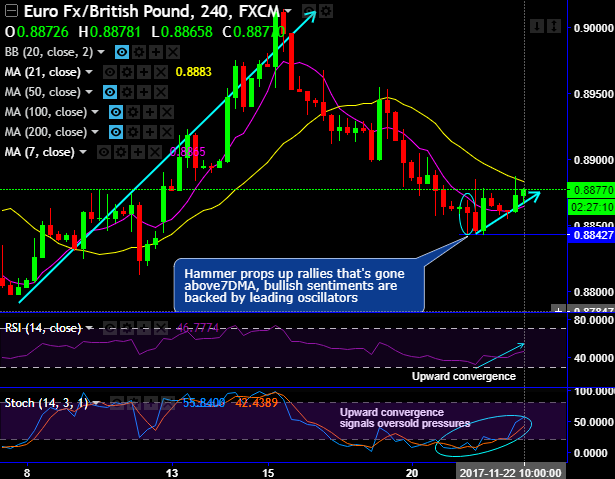 Currency Strength Index: FxWirePro's hourly EUR spot index is displaying shy above -151 levels (highly bearish), while hourly GBP spot index was inching higher towards 92 (bullish) while articulating (at 11:47 GMT). For more details on the index, please refer below weblink: