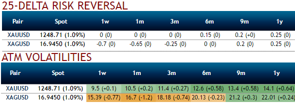 Elsewhere, OTC bullion market indicates uncertainties about bullion prices, the above sensitivity tool evidencing delta risk reversals and IV skews evidence gold prices’ momentary edginess and upside risks in long run. Positively skewed IVs of 2m tenors indicates hedgers’ interests in both OTM put and call strikes, while neutral delta risk reversal number indicates topsy-turvy swings in this precious commodity prices.