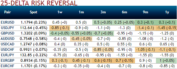 Please also be noted that the IV skewness is very conducive in determining this decision, here in case of USDJPY, the positively skewed IVs are signifying the importance of OTM puts but not deep out of the money puts (2m skews are suggesting strikes maximum upto 110). This bearish sentiment is in sync with the mounting negative risk reversals that again indicates further bearish risks.
