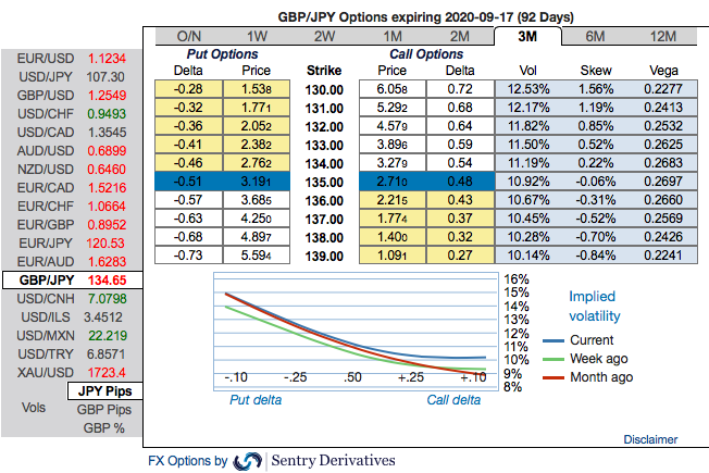 While on trading grounds, buy GBPJPY 2M ATM straddle vs Sell GBPUSD 2M ATM straddle, equal notionals. Courtesy: Sentry, Lloyds & JPM