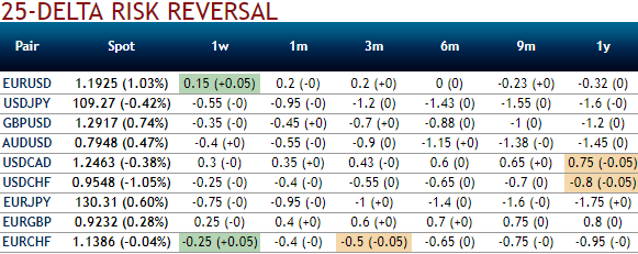 Consequently, OTC indications for Sterling divulge many intricacies, GBPUSD USD now appears to be out of the limelight but certainly not out of the woods. Please be advised that the 25-delta risk of reversal of GBPUSD has not been indicating any dramatic shoot up nor any slumps but bearish neutral (no fresh change in risk reversals has been observed), but seems to be one of the pairs to be hedged for downside risks as it indicates puts have been relatively costlier.