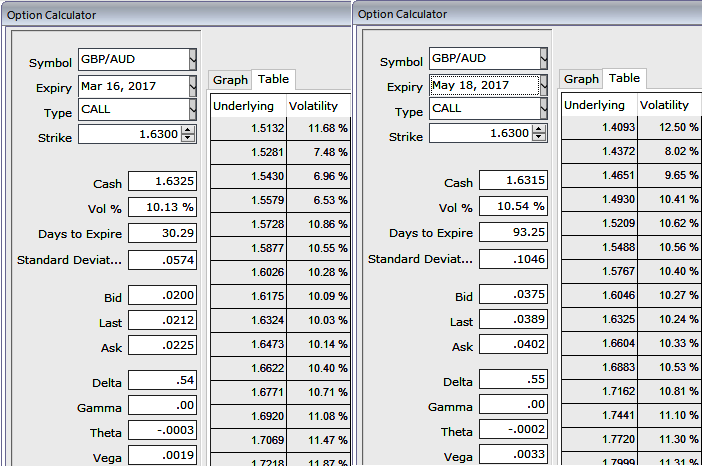 The execution: Initiate long in GBPAUD 3M at the money vega put, long 3M at the money vega call and simultaneously, Short theta in 1m (1%) out of the money call with positive theta or closer to zero. Theta is positive; time decay is bad for a buyer, but good for an option writer.