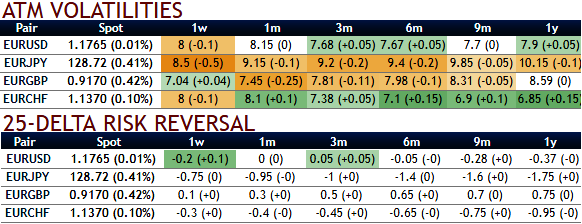 While the current IVs of ATM contracts are at higher levels but likely to perceive hover around at an average 8-8.5% in the long run that would divulge pair’s gain contemplating risk reversal arrangements.