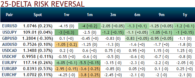 The options positions set to shift and the FX OTC market is seeing a wave of unwinding of medium-term bearish puts as the 1y GBPUSD risk reversal has softened to its lowest level since end- 2015. You could make out this from the short covering curves, positive flashes of risk reversals in 3-9m tenors and bearish-neutral numbers.