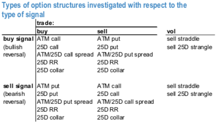 Notably, a sizable portion of the observed returns comes from fading momentum of an existing trend. This makes selling put options on “buy” signals and selling call options on “sell” signals along with owning risk reversals on "buy" and selling them on "sell" signals two favorable expressions that utilize stochastic oscillator (refer 2ndchart).