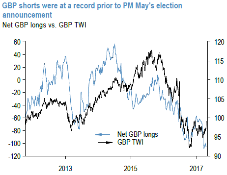 That the news came at a time that GBP shorts were a near record only helped to exacerbate the market move (refer above chart).